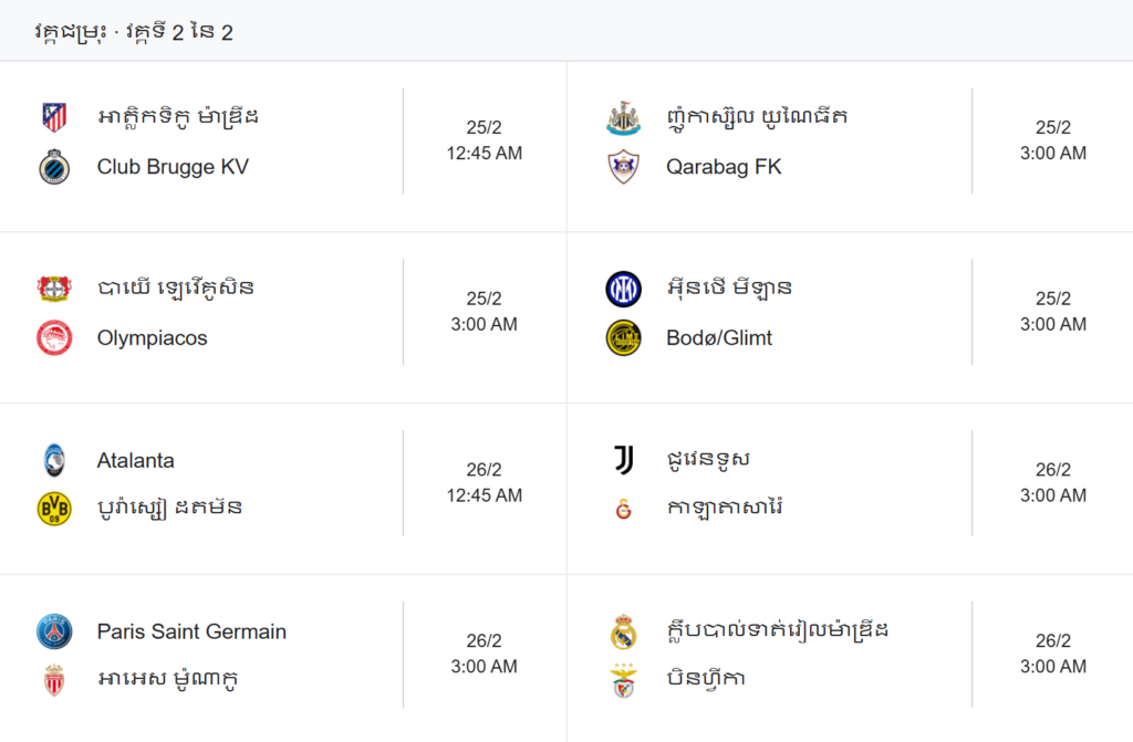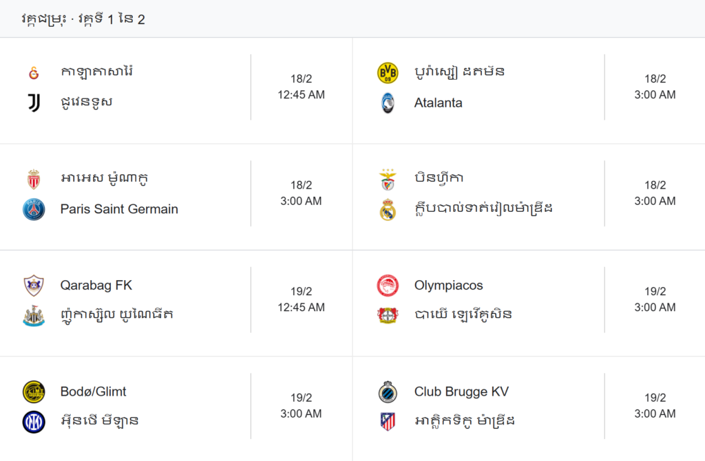 វគ្គ Play Off ក្នុងពានរង្វាន់ UEFA Champions League ចាប់ផ្ដើម នៅថ្ងែទី12ខែកុម្ភះឆ្នាំ 2026 គូរចាប់ផ្ដើមដំបូង Galatasaray និង សេះបង្កង Juventus នៅវេលា 12:45AM ជើងទី១