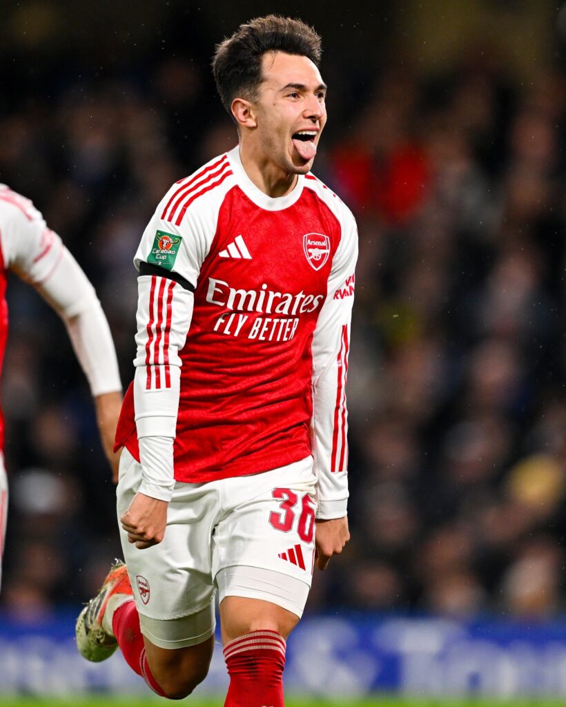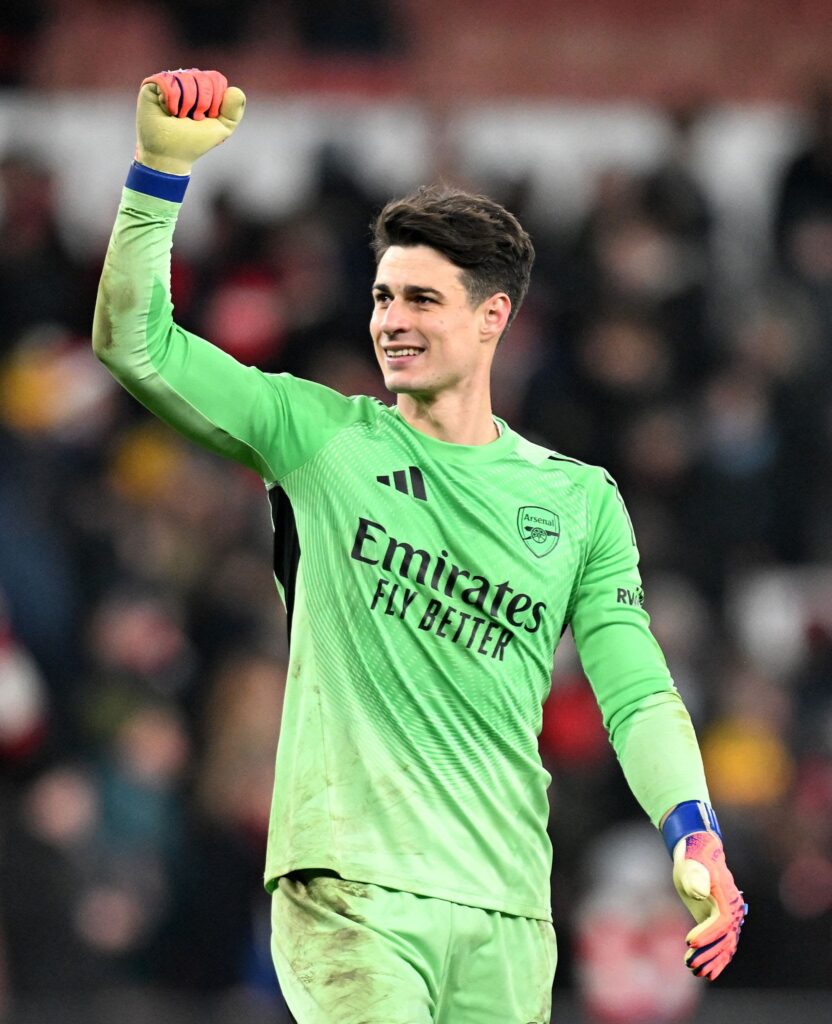 ទីក្រុងឡុងដ៍ ប្រទេសអង់គ្លេស - ថ្ងៃទី 23 ខែធ្នូ៖ កីឡាករ Kepa Arrizabalaga របស់ Arsenal អបអរបន្ទាប់ពីទទួលជ័យជម្នះក្នុងការប្រកួតវគ្គពាក់កណ្តាលផ្តាច់ព្រ័ត្រ Carabao Cup រវាងក្រុម Arsenal និង Crystal Palace នៅកីឡដ្ឋាន Emirates នៅថ្ងៃទី 23 ខែធ្នូ ឆ្នាំ 2025 នៅទីក្រុងឡុងដ៍ ប្រទេសអង់គ្លេស។